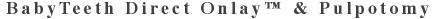 Description: Large decay on 2nd primary molar (on the upper jaw) of a 7-year old (see top photo). Due to the large size of cavity and penetration of decay into the pulp chamber (where nerve and blood vessels are located), a pulpotomy (similar to a root canal treatment) was performed (see middle photo). Both aesthetics and function have been beautifully restored with a BabyTeeth Direct Onlay (see bottom photo).